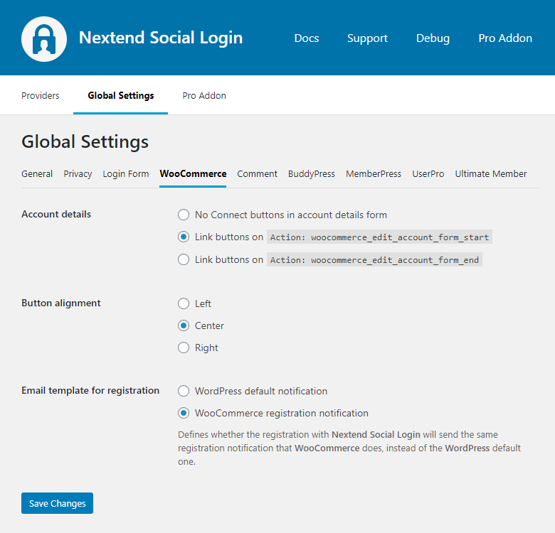 You can use this setting to position the social buttons in WooCommerce forms to left, center or right.