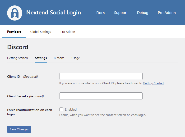• Force reauthorization on each login: When enabled, the users will be asked to reauthorize the Discord App each time they login with Discord.
