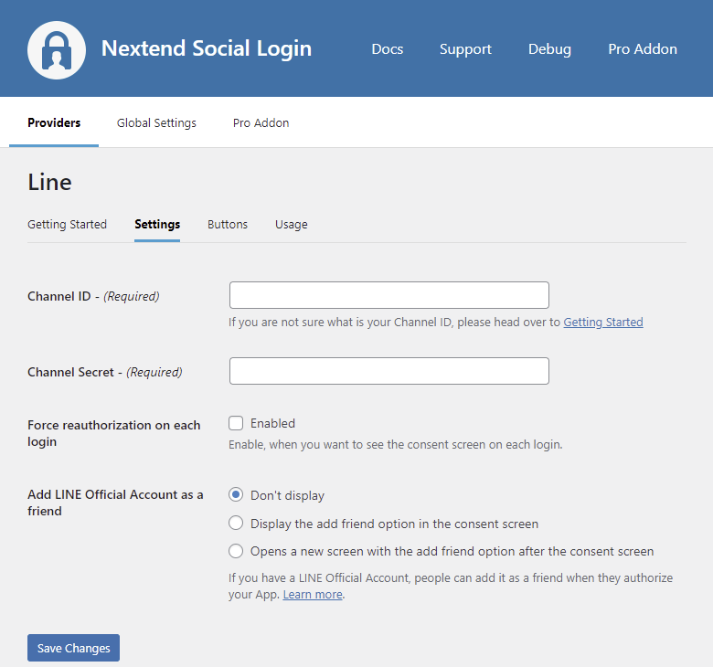 12. Open the backend of Nextend Social Login and on the Settings tab of the Line provider you should chose the option for Add LINE Official Account as a friend that your prefer.