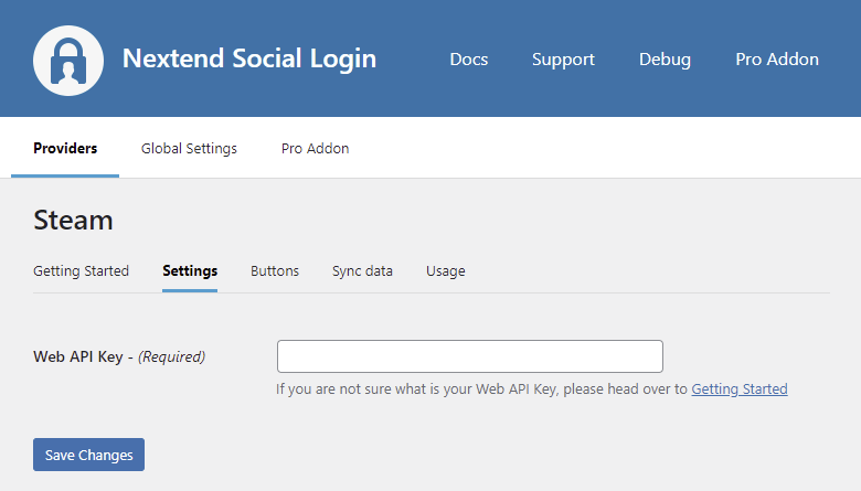 Once your Steam Web API Key is ready you’ll need to copy and paste the Key to the Steam provider’s Settings tab.