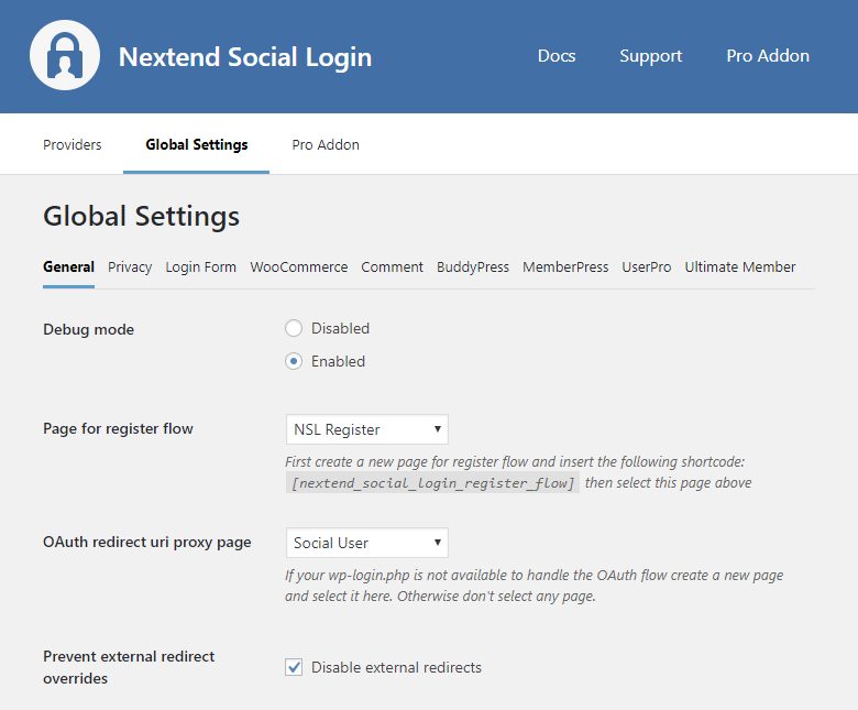When enabled, registration with a provider will no longer allow users to log in with their social accounts if the registration on the website is flagged for admin approval or email verification by a plugin that is supported by us. You can find the full documentation of login restriction here.