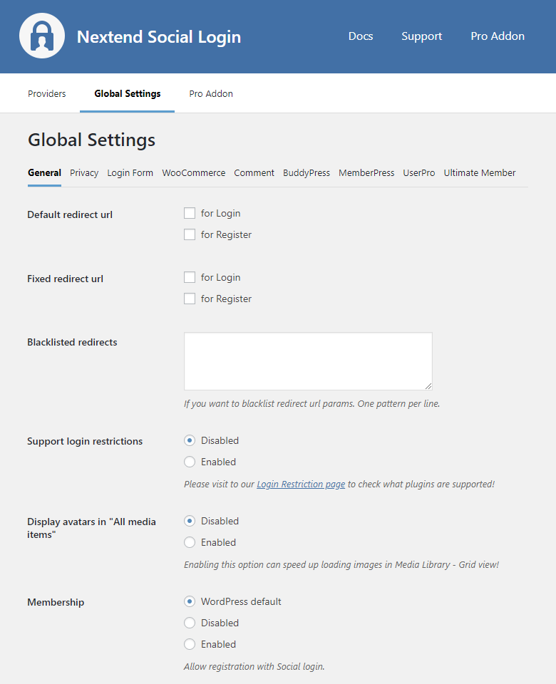 - WordPress default: Inherit the default membership setting of WordPress from Settings > General > Membership.