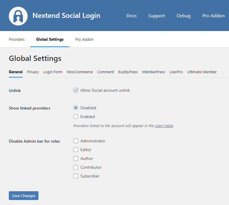 - When enabled, the Users table will display the name of the providers which are linked to the WordPress account.